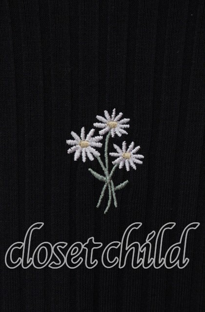 axes femme / マーガレット刺繍リブトップス F クロ O-25-09-13-033-AX-TO-OW-OS