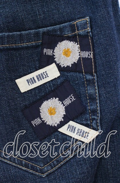 PINK HOUSE / ワッペン使い裾フリルデニムパンツ M ブルー O-25-09-13-047-LO-PA-OW-ZT268