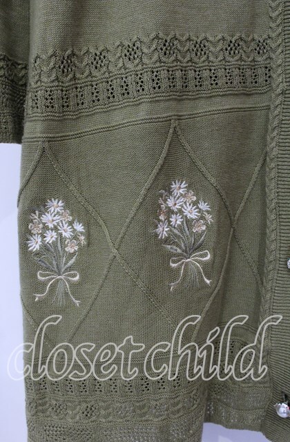 axes femme / ブーケ刺繍ロングニットカーディガン M グリーン O-25-09-13-021-AX-TO-IG-ZT061