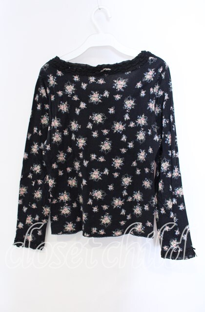 PINK HOUSE / ピコフリル使い花柄カットソー M クロ O-25-09-13-041-LO-TO-OW-ZT243
