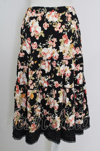 PINK HOUSE / オールドローズブーケカットスカート 黒Xピンク T-25-09-14-016-LO-SK-SA-ZI
