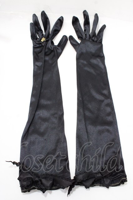ALICE and the PIRATES / フリルサテンロンググローブ 黒 Y-25-09-14-015-PA-ZA-SZ-ZY