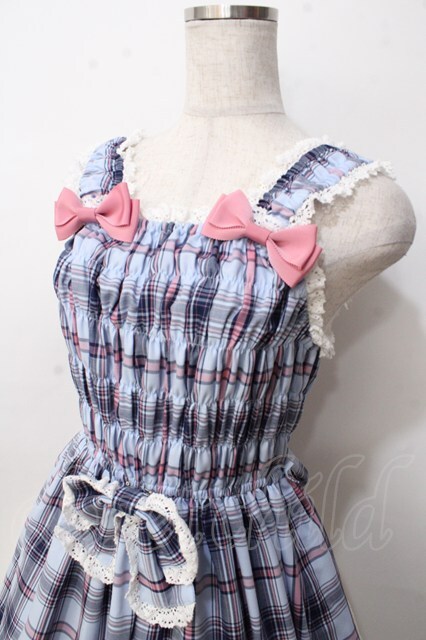 BABY,THE STARS SHINE BRIGHT / オリジナルタータンチェックシャーリングプリンセスジャンパースカート サックス Y-25-09-14-066-BA-OP-SZ-ZY