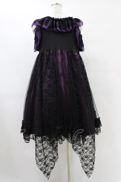 MR corset / レースフリル蝶プリントワンピース 黒×紫 H-25-09-21-1020-PU-OP-KB-ZH