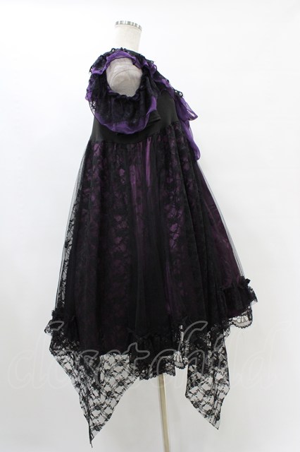 MR corset / レースフリル蝶プリントワンピース 黒×紫 H-25-09-21-1020-PU-OP-KB-ZH