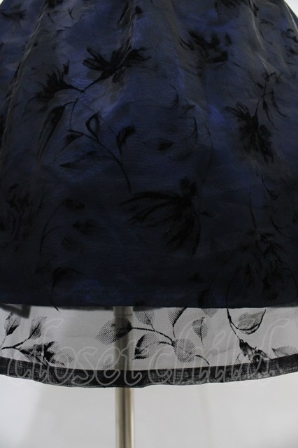 Moi-meme-Moitie / 花柄フロッキーミニジャンパースカート 9号 黒×青 H-25-09-21-1026-MO-OP-KB-ZH