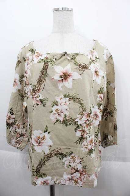 INGEBORG / 百合柄ノーカラーブラウス ベージュ I-25-09-13-029-LO-BL-HD-ZT198