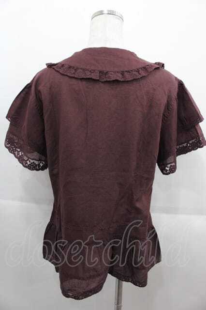 PINK HOUSE / レースフリル半袖ブラウス バーガンディ I-25-09-13-045-LO-BL-HD-ZT453