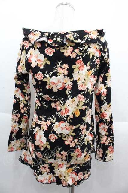 PINK HOUSE / オールドローズブーケカットソー 黒Xピンク I-25-09-13-055-LO-TO-HD-ZI
