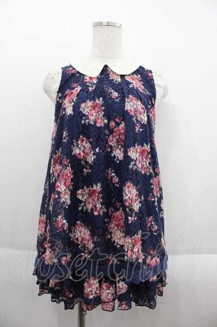 LIZ LISA / フラワーレースプリントノースリーブトップス&スカパンセットアップ ネイビー I-25-09-13-091-LO-TO-HD-ZT071