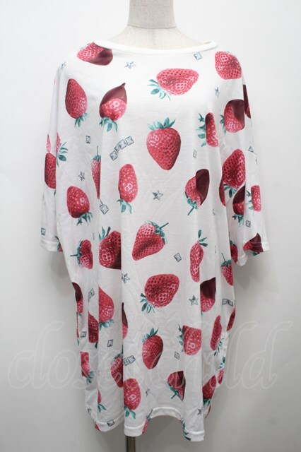 LISTEN FLAVOR / ストロベリーチョコレート総柄トップス 白 S-25-09-13-004-PU-TO-HR-ZT365