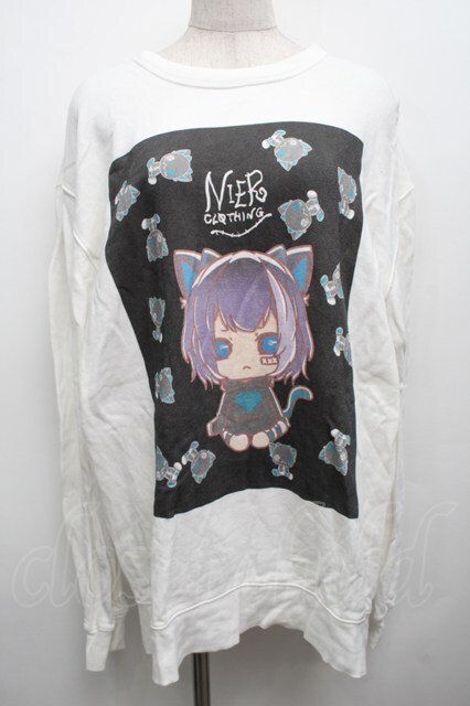 NieR Clothing / プリントスウェットトップス 白 S-25-09-13-006-PU-TO-HR-ZI