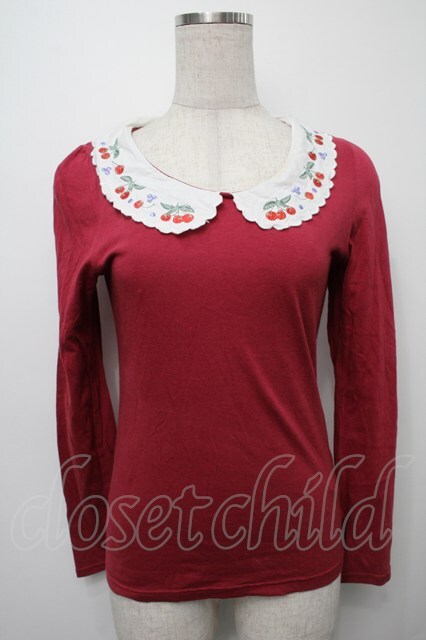 Fi.n.t / さくらんぼ刺繍襟ブラウス 赤 S-25-09-13-020-CA-TO-HR-ZS