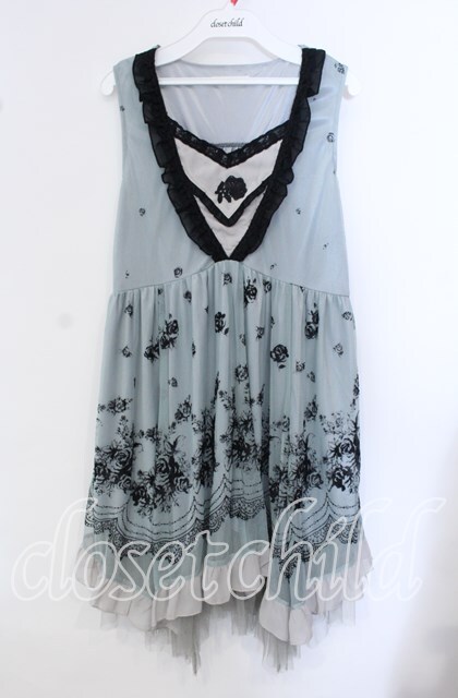 axes femme / チュールフロッキー切替ワンピース M グリーン O-25-09-15-059-AX-OP-OW-OS