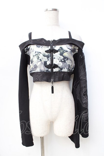 Qutie Frash / 和柄オフショルショートボレロ 黒 Y-25-09-16-046-QU-TO-SZ-ZY