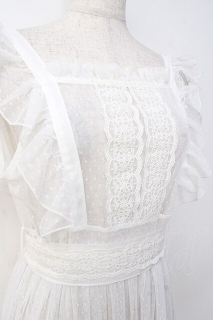 axes femme kawaii / ドットチュールエプロン M 白 Y-25-09-16-049-AX-OP-SZ-ZY