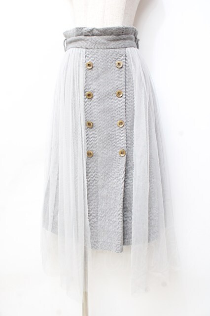 axes femme / Wスコッチ釦レイヤード風スカート グレー Y-25-09-16-075-AX-SK-SZ-ZI