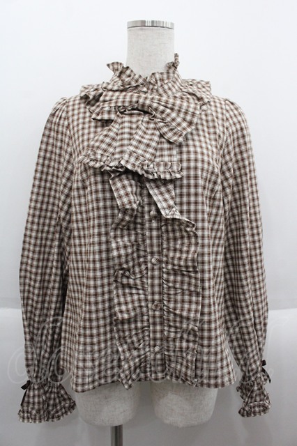 axes femme kawaii / チェック柄ブラウス M 茶 I-25-09-15-008-AX-BL-HD-ZI