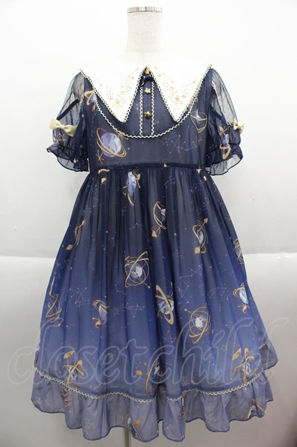 To Alice / プラネタリウム刺繍入り半袖ワンピース M ネイビー I-25-09-15-056-LO-OP-HD-ZI