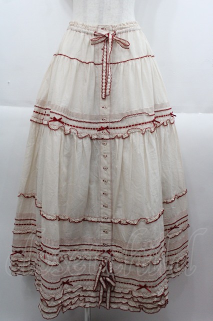 PINK HOUSE / ローンティアードスカート アイボリーX赤 I-25-09-15-073-LO-SK-HD-ZI