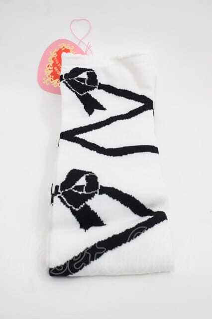 BABY,THE STARS SHINE BRIGHT / レースアップリボン柄オーバーニーソックス 白X黒 I-25-09-15-116-BA-ZA-HD-ZI