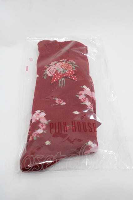 PINK HOUSE / リボンブーケ柄ソックス 赤 I-25-09-15-117-LO-ZA-HD-ZI