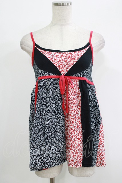 ALGONQUINS / プリント切替ベビードールキャミ 黒 H-25-09-24-074-AL-TO-KB-ZT495