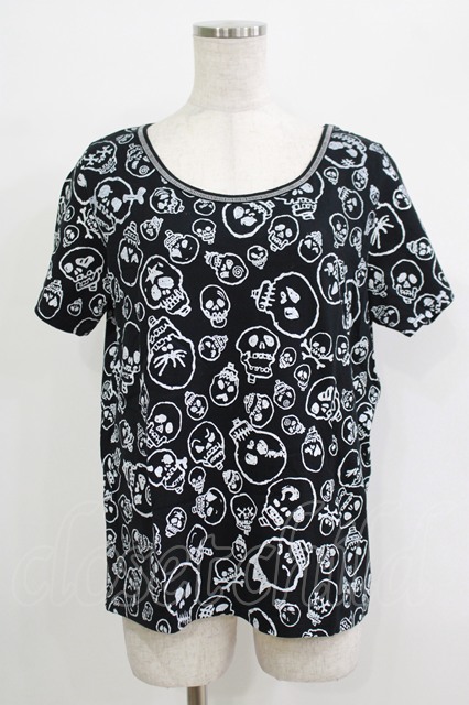 ALGONQUINS / スカルプリント半袖カットソー 黒 H-25-09-24-059-AL-TO-KB-ZT491