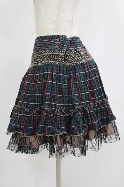 ALGONQUINS / 裾チュールチェックスカート グリーン H-25-09-24-010-AL-SK-KB-ZH