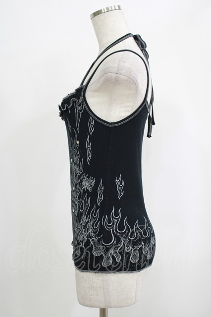 ALGONQUINS / プリントホルター付キャミソール 黒 H-25-09-24-067-AL-TO-KB-ZT491