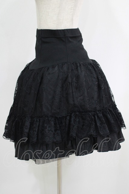 Qutie Frash / 蜘蛛の巣レースティアードスカート 黒 H-25-09-24-005-QU-SK-KB-ZH [戻る]