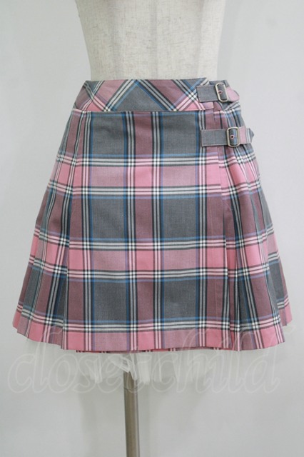 Jane Marple / チェックラップスカート ピンク H-25-09-24-014-JM-SK-KB-ZH