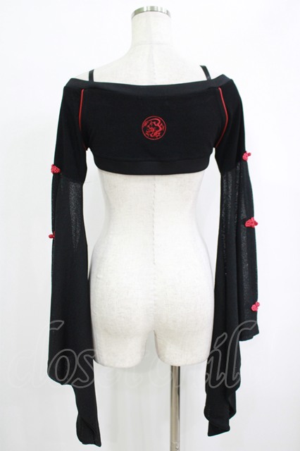 Qutie Frash / 着物オフショルショートカーデ 黒×赤 H-25-09-24-051-QU-TO-KB-ZH