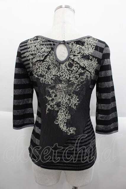 OZZ ANGELO / ラメボーダーハイネックトップス 黒Xシルバーラメ I-25-09-18-060-OO-TO-HD-ZI