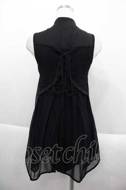 Rozen Kavalier / ハートローズプリントチュール重ねノースリーブトップス 黒 I-25-09-18-068-OO-TO-HD-ZI