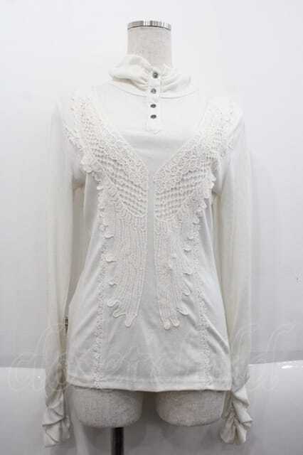 OZZ ANGELO / ハイネックレースデザインカットソー 白 I-25-09-18-078-OO-TO-HD-ZI