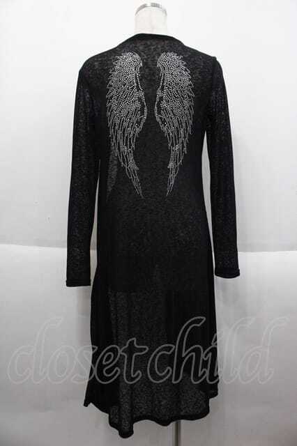 Rozen Kavalier / 後ろ羽根ストーンロングカーディガン 黒Xシルバー I-25-09-18-081-OO-TO-HD-ZI
