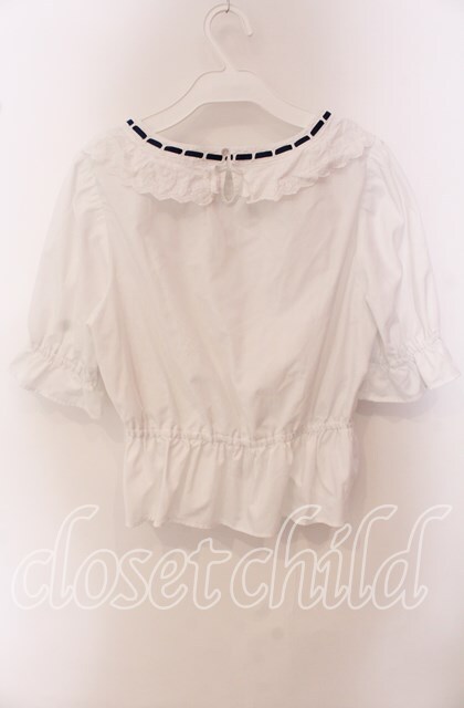 Fi.n.t / コットンレース使いはしごリボンブラウス F シロ×アオ O-25-09-20-100-CA-BL-OW-ZT360