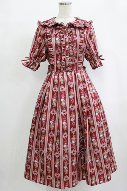 axes femme kawaii / RosyBear柄ワンピース M ワイン H-25-09-27-050-AX-OP-NS-ZH