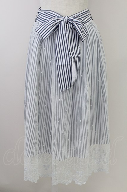 axes femme / ストライプXレーススカート M ブルー T-25-09-21-029-AX-SK-SA-ZI