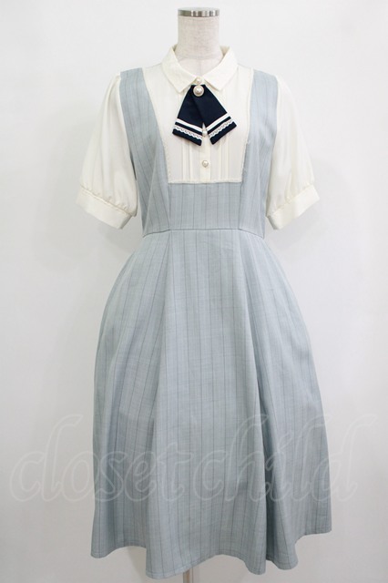 axes femme / タイ付重ね着風ストライプワンピース Free サックス H-25-09-28-004-AX-OP-NS-ZH