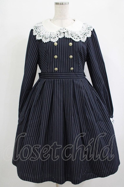 Lulu's Garden(海外ロリータブランド) / ストライプワンピース L ネイビー H-25-09-28-009-PU-OP-NS-ZH