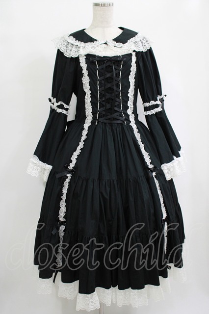 metamorphose / 【プラスサイズ】無地ラッセルレース姫袖ワンピース プラスサイズ ブラック/オフ白 H-25-09-28-001-ME-OP-NS-ZH [戻る]
