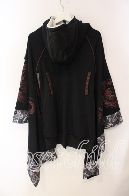 Qutie Frash / 龍プリントボア着物袖パーカー ブラック×レッド O-25-09-22-071-QU-CO-IG-OS