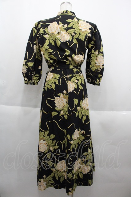 INGEBORG / 薔薇柄半袖開襟ワンピース ブラック I-25-09-21-078-LO-OP-HD-ZI [戻る]
