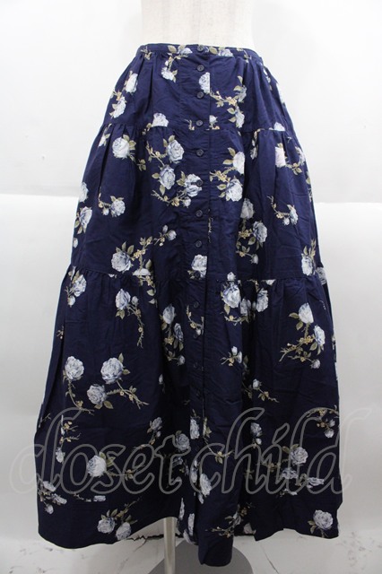 KETTY / オールドローズ柄スカート 青 I-25-09-21-086-EL-SK-HD-ZI