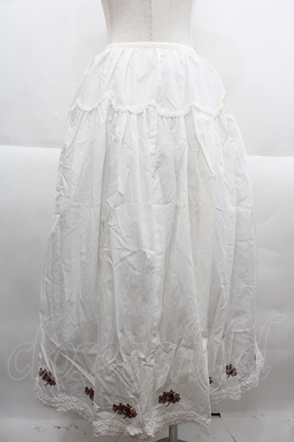 KETTY / 裾ローズブーケ刺繍スカート 白X赤 I-25-09-21-091-EL-SK-HD-ZI