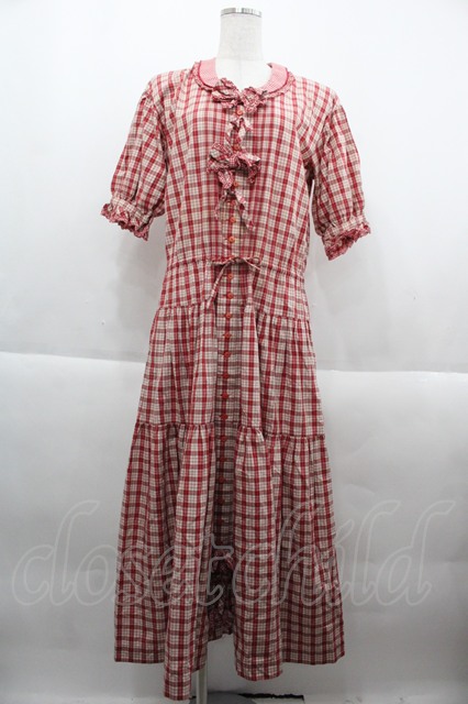 WONDERFUL WORLD / ギンガム&マドラスチェック半袖ワンピース レッド I-25-09-21-080-LO-OP-HD-ZI