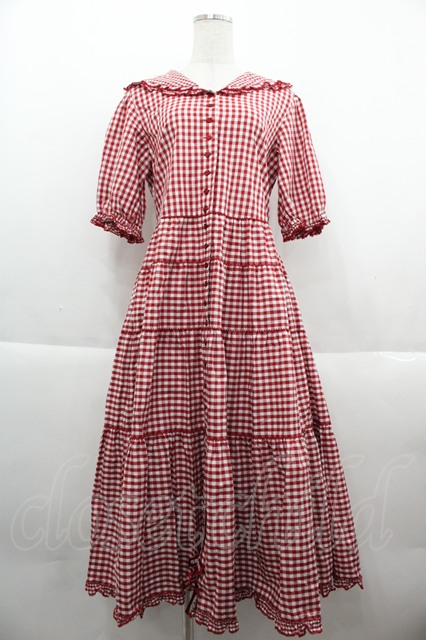 PINK HOUSE / セーラーカラーギンガムチェックミディワンピース 赤チェック I-25-09-21-063-LO-OP-HD-ZI