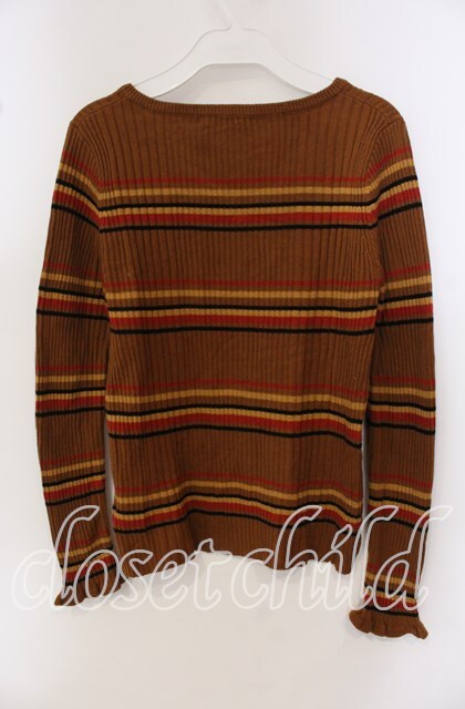 E hyphen world gallery PEACE / マルチボーダーリブプルオーバー キャメル O-25-09-23-068-LO-TO-IG-ZT362